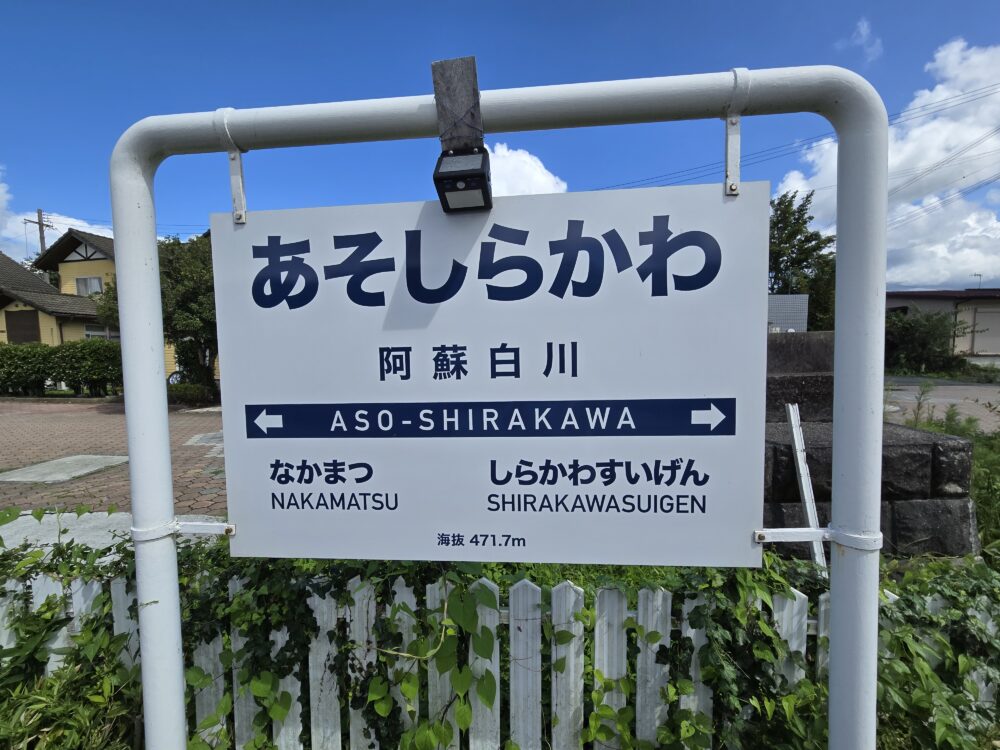 見晴台駅から立野方面へと折り返して阿蘇白川駅で下車。時刻は10時38分。当初の予定だと立野どころか、11時48分の列車に乗るべく、まだ肥後大津で待機中。「まだ」というより「まだまだ」だ。早めに着くのだから荷物をホテルで預かってもらって…などと考えていたが、飛行機の5分早着は本当に幸運、強運だった。全9駅(立野をのぞく)の南阿蘇鉄道において、もう2駅目なのだから、これは大きい