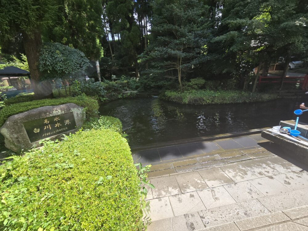 そして白川水源へ。写真は人の姿が一瞬消えてタイミングを見計らって撮ったが、実際は人がいっぱい。入口近くの駐車場には団体のバスも停まっていた。平日でこれだから週末はもっとにぎわうのだろう