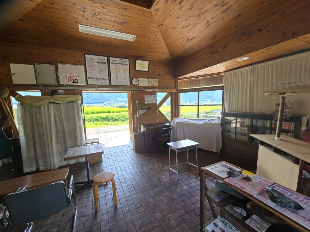 私の訪問日は営業日ではなかったが、週に2度ほどの営業で南阿蘇村では唯一の書店だという。駅ピアノも置かれている。実はこの日、当駅で降りたのは私だけではなかった