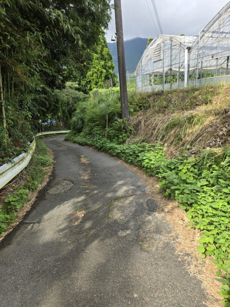 ビニールハウスの傍らの車だとすれ違い困難な見通しの悪い道を降りていって、また登る。携帯アプリがないと、地図だけではちょっと勇気の要る道程だ。そもそも地図にどの程度描かれているのか分からない。携帯アプリがないと、このコースでの到達は困難だろう。携帯アプリがあっても果たして自分の進んでいるコースが正しいのかどうか何度も見直したほどだ