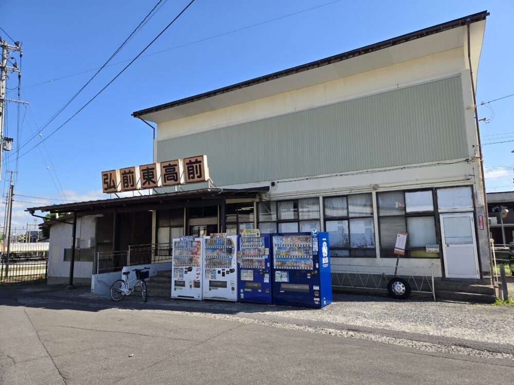 立派な駅舎を持っている。この後も出てくるが、同じ弘南鉄道でも弘南線は大鰐線に比べると立派な駅舎を持つ駅がたびたび登場する。もともと弘南線のみからスタートして、後に大鰐線の経営を引き継ぐことになったという経緯があるので特徴に違いがあっても不思議ではない