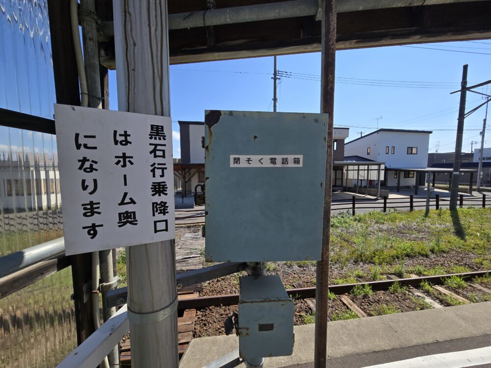単式ホームとなっているため、弘前行き、黒石行きは乗車位置を変えて対応しているようだ