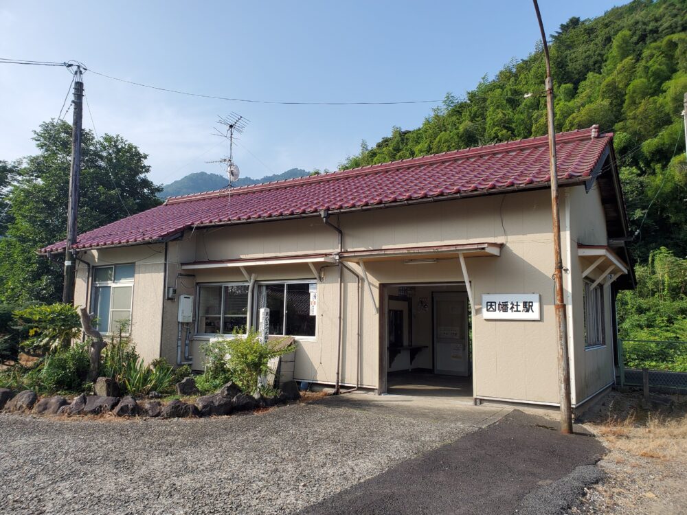因美線の因幡社駅。2020年の8月23日。予備知識なしで朝8時過ぎに駅に降り立った私は人の気配がするので様子を見たところ
