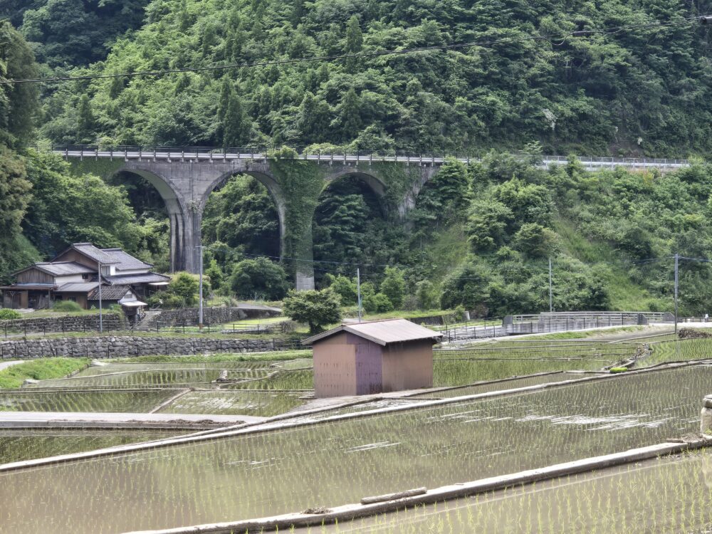 本数が少ないので初夏の季節に1駅間を1時間近く歩くことになりましたが、雄大なめがね橋の景色を眺めることができ、当時の難工事を知ることもできました