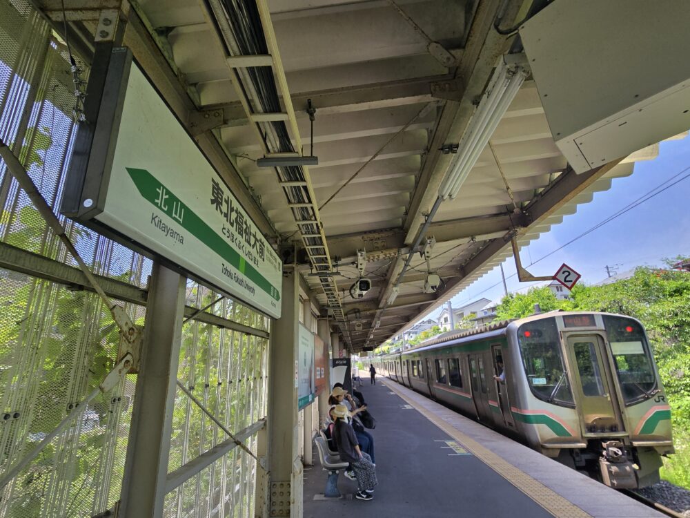 仙山線を山形へと向かい、愛子や山寺などでも降りましたが、意外とうれしかったのは東北福祉大前駅での初下車。東北福祉大OBの方には仕事柄数多く出会いましたが、実際に駅で降りたのは初めて