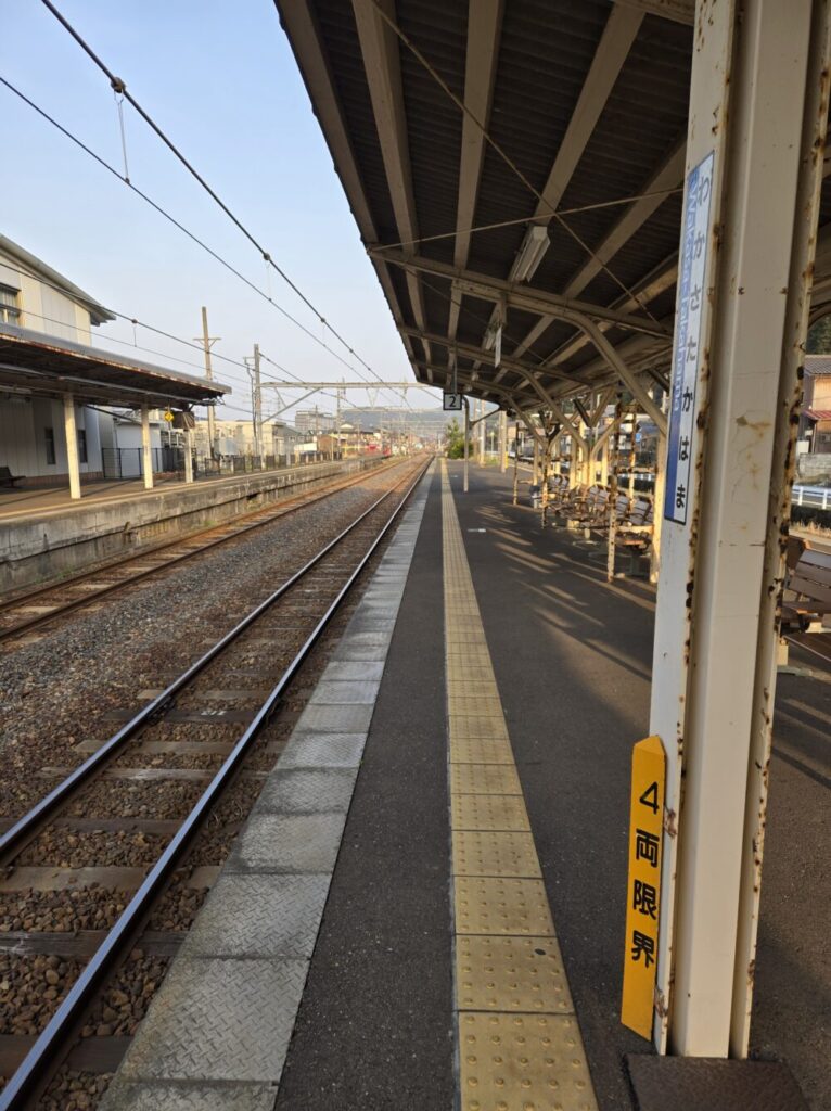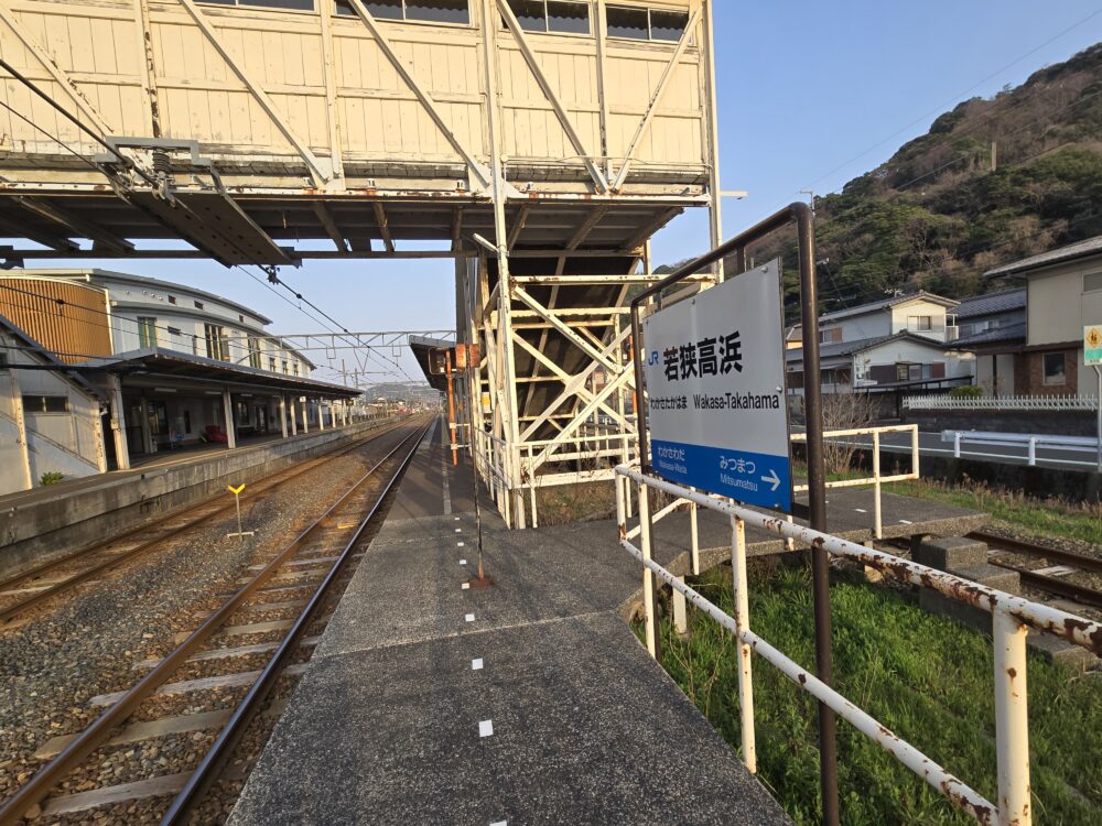 若狭高浜駅に到着したのは17時ちょうど。3月末の訪問は夕陽が迫っている