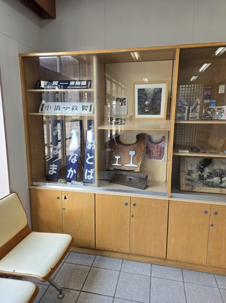 待合所にはサボのほか、ホーローの駅名標も保存されていた。なぜか小浜駅のホーロー板まである