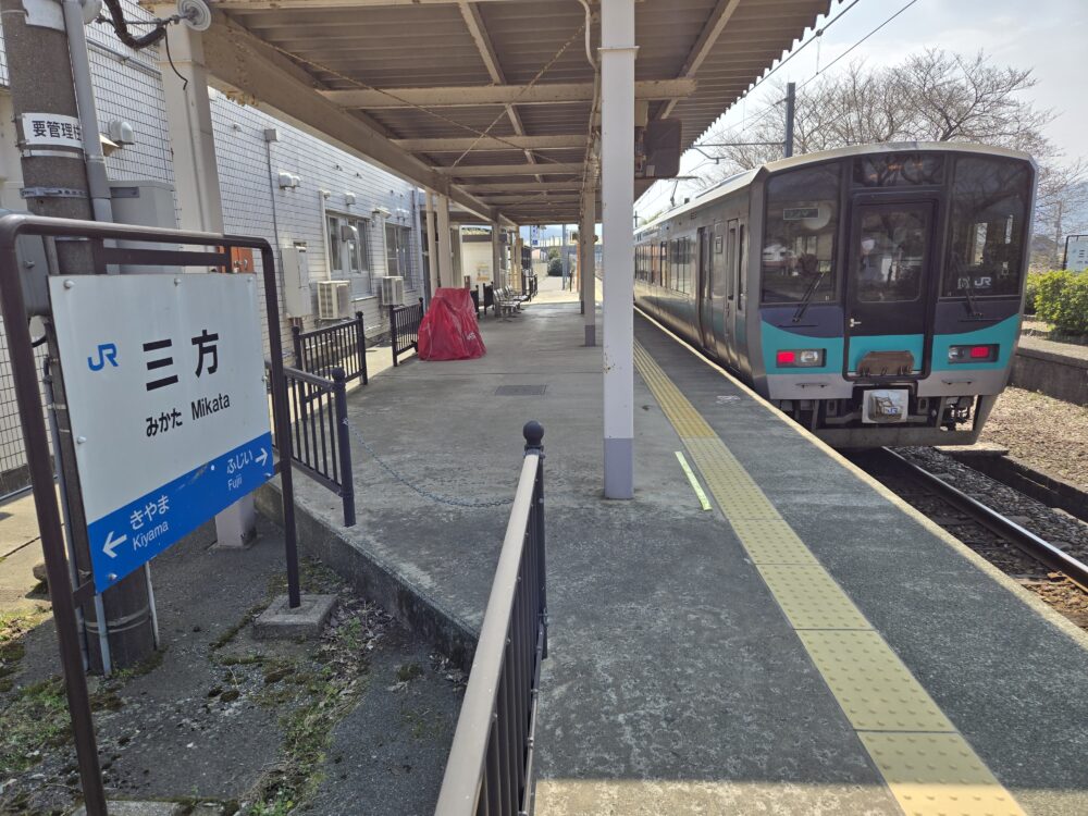 貨物の取り扱いも行っていたが、昭和30年代に貨物の扱いはなくなっている。2022年度の1日の利用者数は154人。コロナ禍の影響が残る年でもあったが、この数字は京都府との府県境に近い青郷駅や以前は駅舎がなかった三松駅とほとんど同じ数字となっていて22駅(敦賀と東舞鶴をのぞく)中13位。ちなみに美浜駅は370人で7位である。地図でも分かる通り、三方湖のほぼ湖畔の三方五湖PAに若狭舞鶴自動車のスマートインターが2018年に開通している