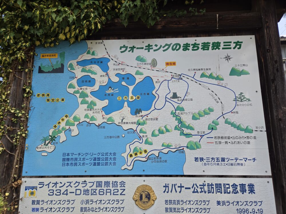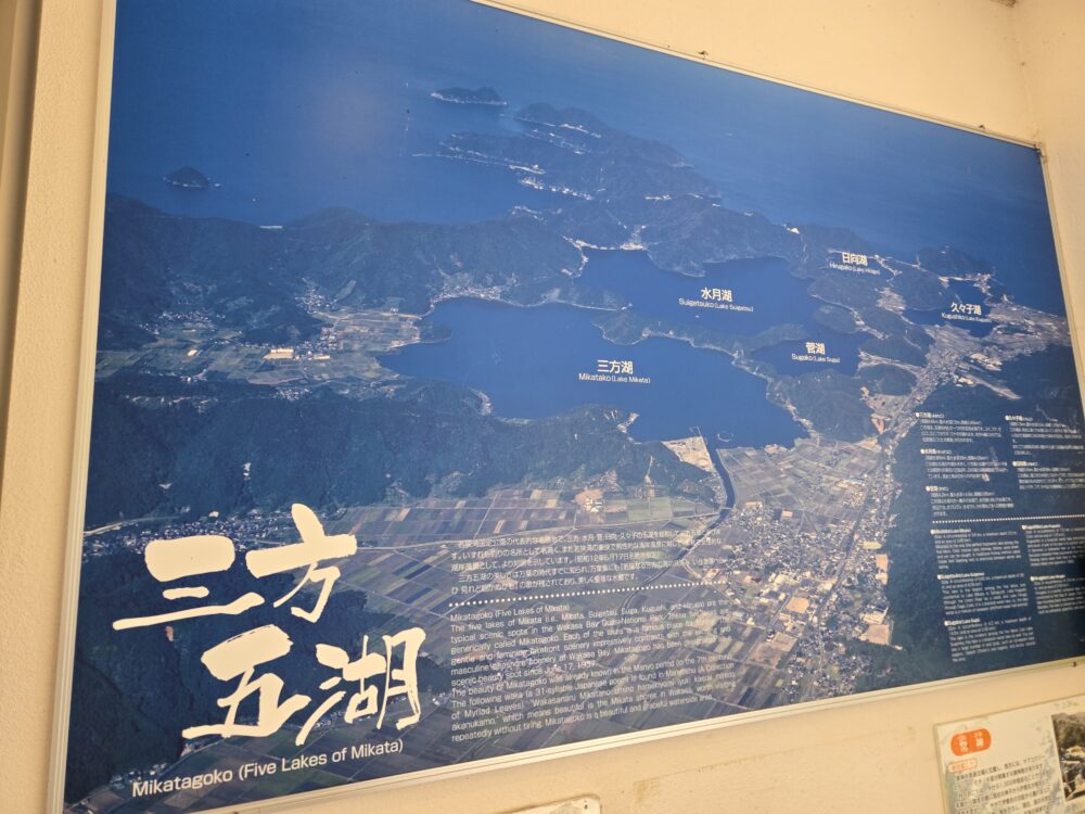 駅前の周辺図が三方五湖の位置関係を分かりやすく表記している