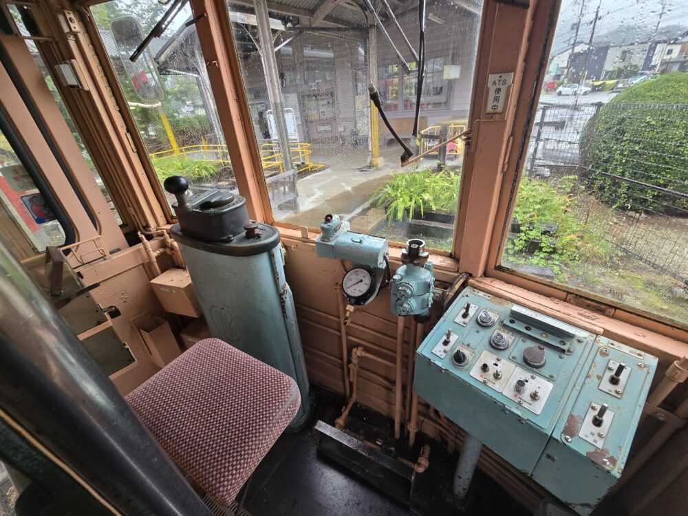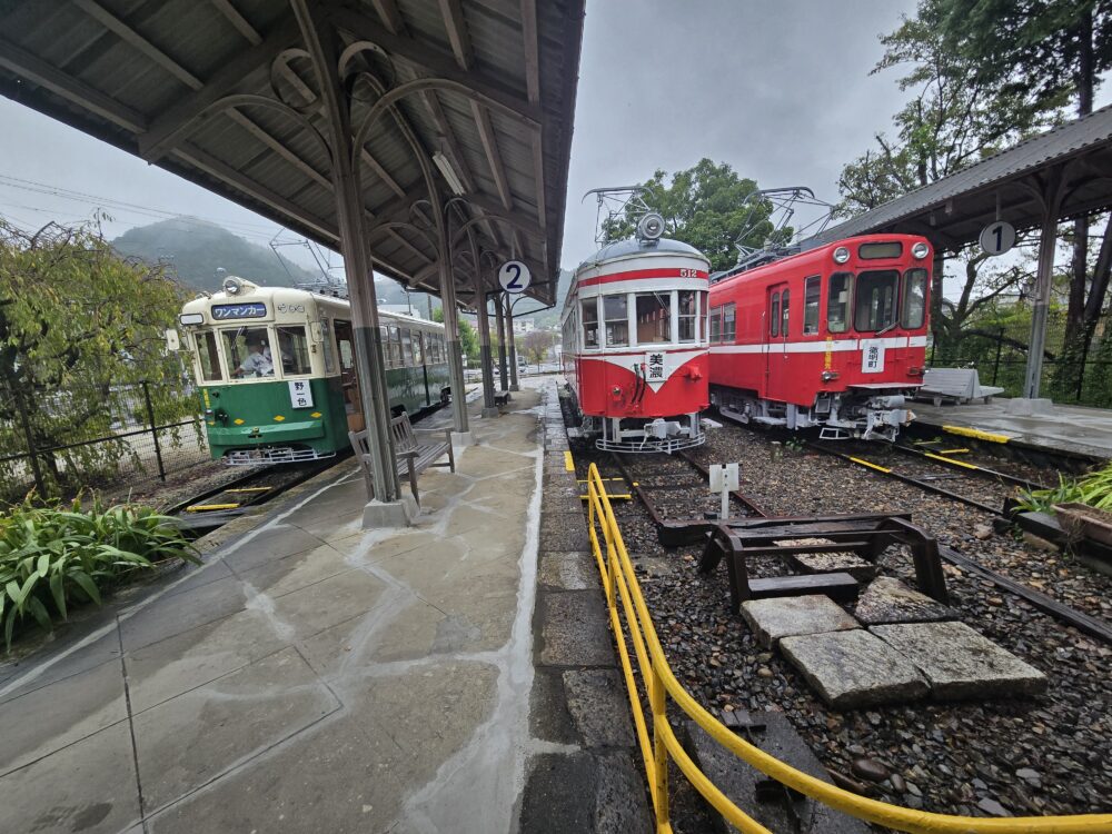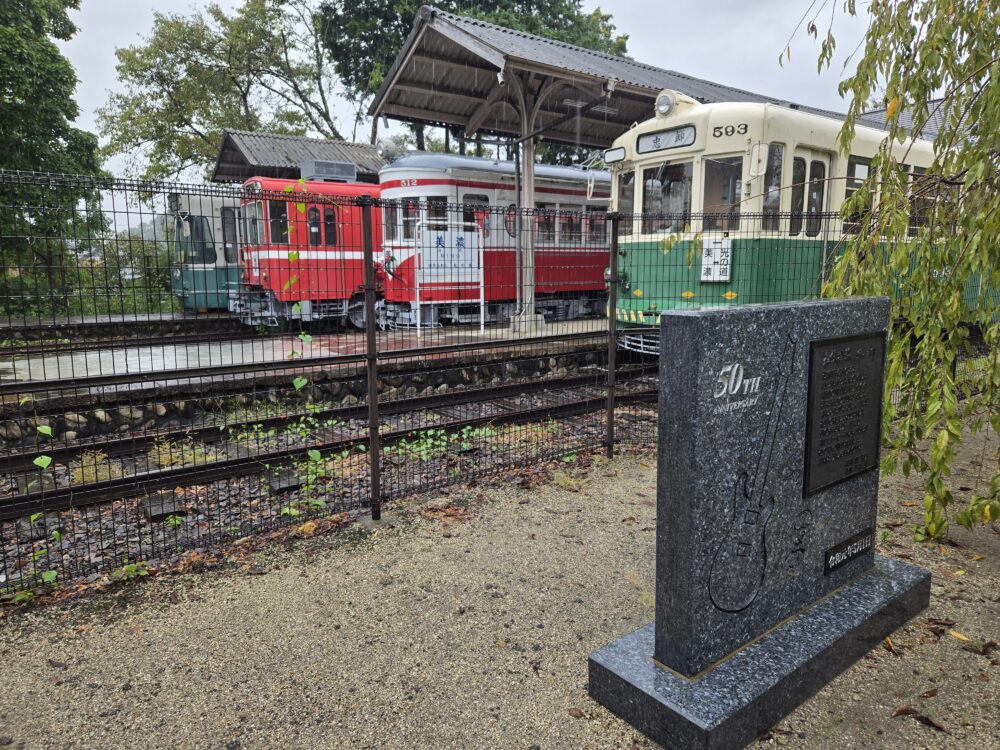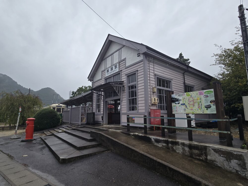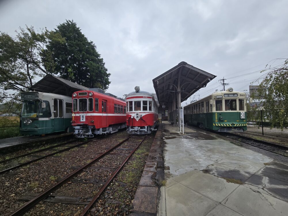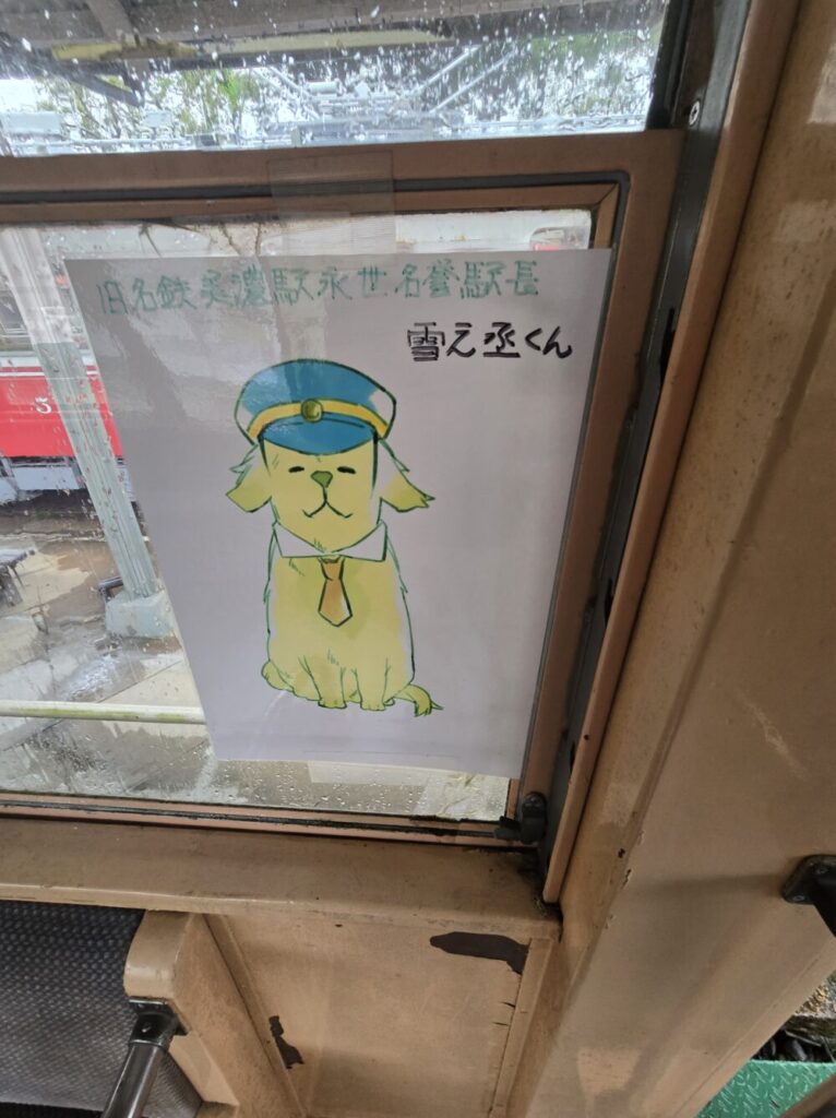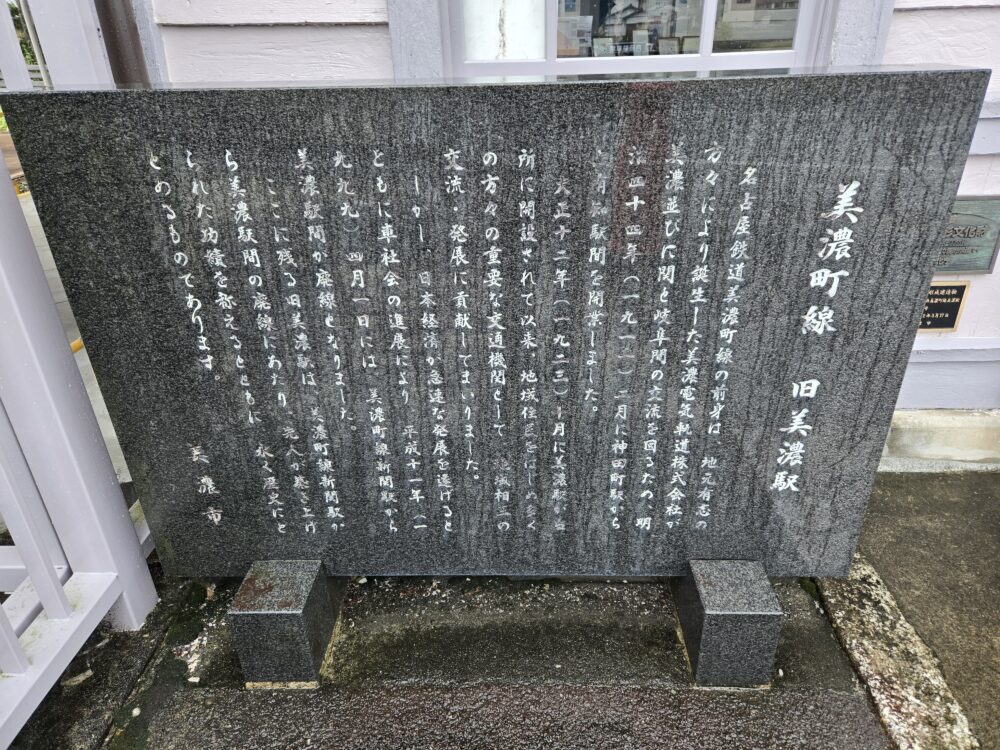 あらためて旧美濃駅。向こうに車両が見えるが、廃線から15年以上が経過しても、内外ともにきれいに保たれている。私の訪問時も雨が降る中、数人の訪問があった。すべてが同業者(鉄道ファン)というわけではなく、廃線となってもなお町の顔のイメージを保っている