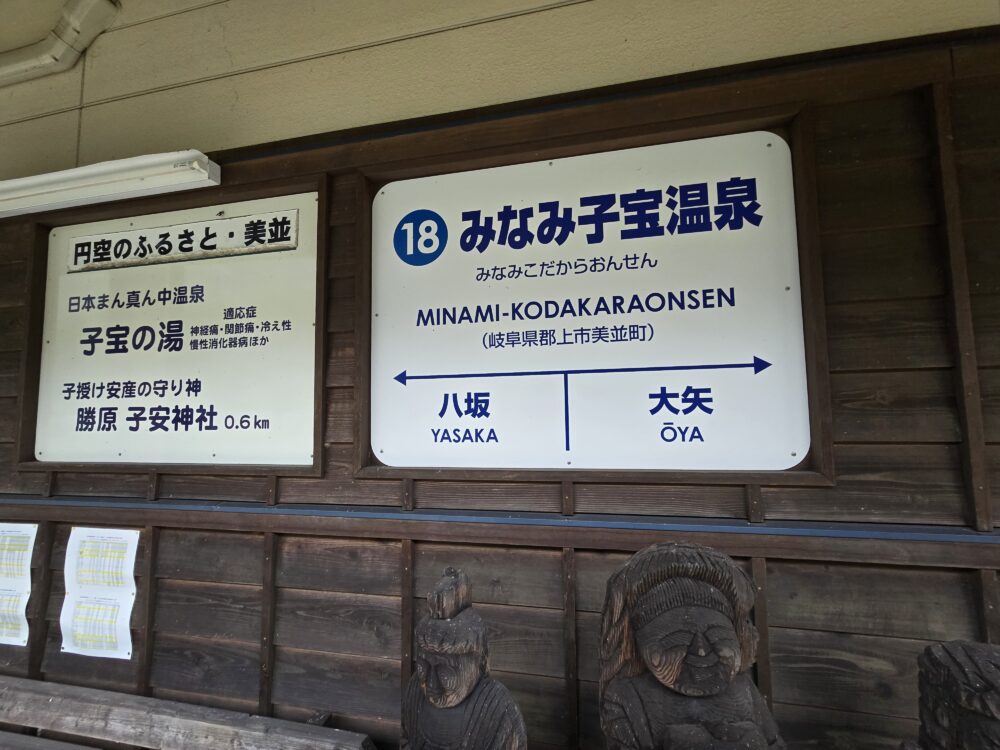 子宝とは駅の近くにある安産の神様「子安神社」に基づき、円空とは地元出身の僧侶で仏師。なかなかすぐというわけにはいかないが、次回はこの温泉に入り、中のレストランで食事をしながら列車を待ちたいと思っている