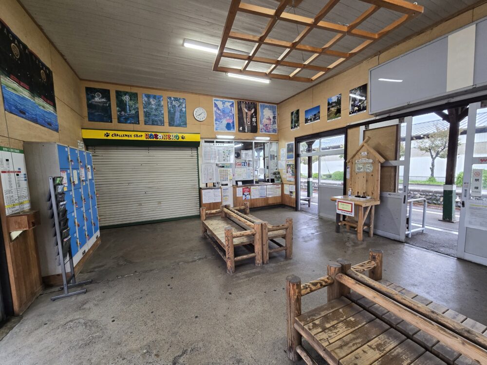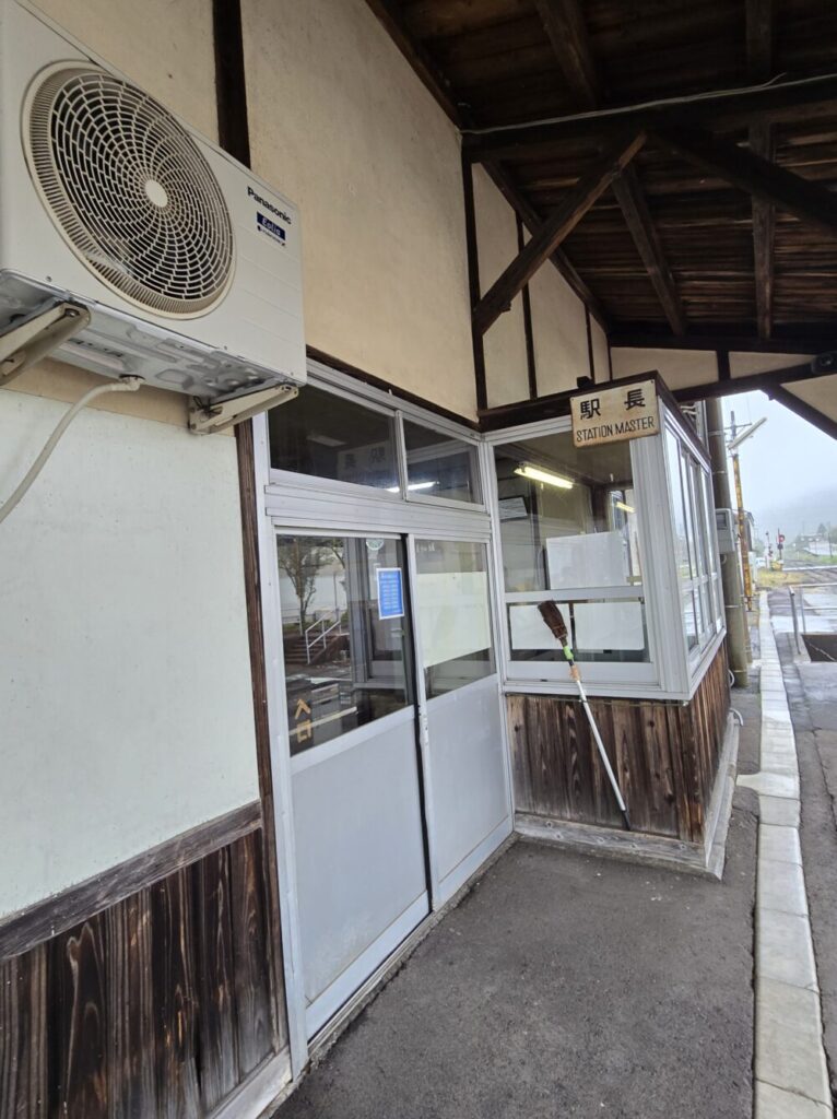 古めの駅長室の文字に見送られ、二日目の旅のスタートだある