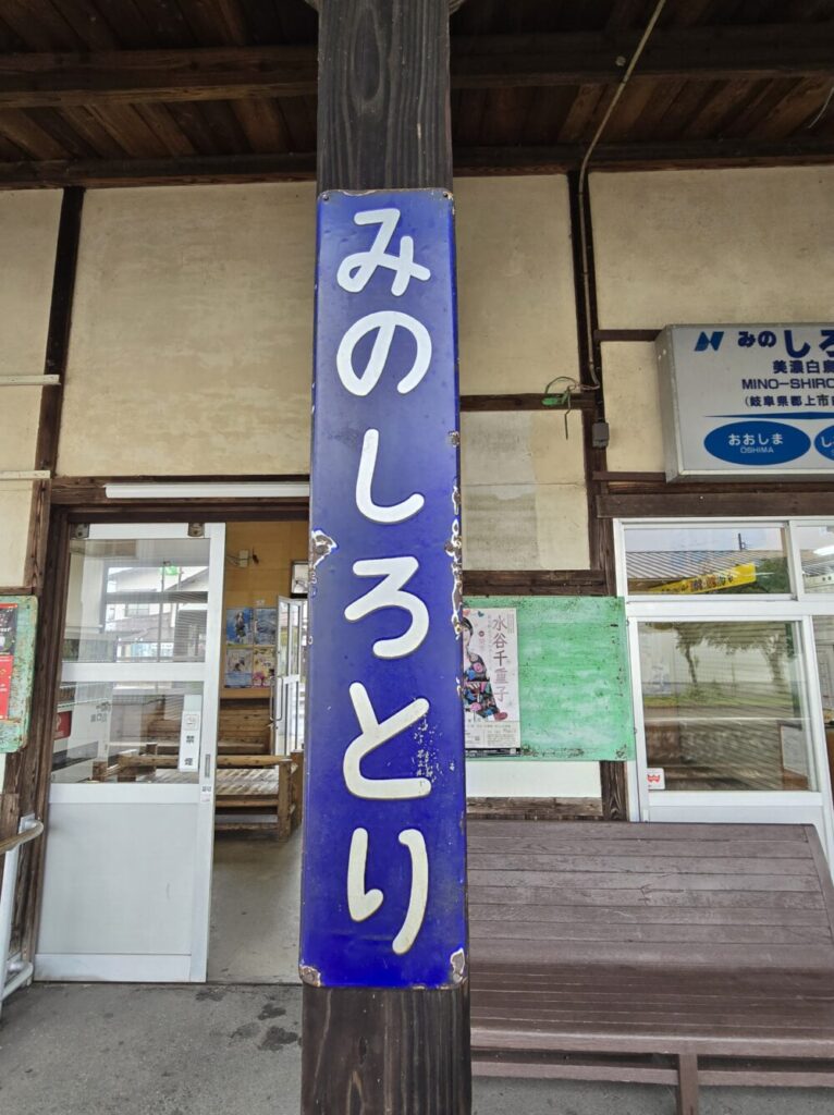 長良川鉄道の各駅には「ホーローらしき」縦駅名標が設置されているが、当駅のものは国鉄時代からの本物だ