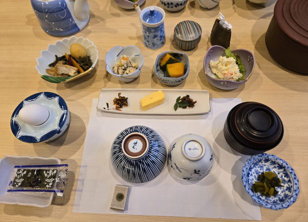 翌日の旅館らしい朝食。おひつのご飯って何であんなにおいしいのでしょう。大概ほとんど平らげてしまう
