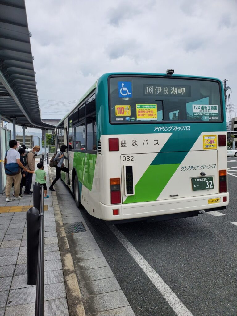 伊良湖岬行きのバスに乗車。約1時間の乗車である。私は旅気分で楽しく車窓を眺めることができたし、駅前の解説板のおかげで未成線の路盤も眺めることができたが、仮に日常的に利用するとなると、路線バスに1時間乗車というのは、なかなか長い。土曜日の14時という時間帯で、高校生の利用は少なかったが、それでも何人かの高校生が乗車して途中で降りていった。途中に高校があり、そちらからの利用もあった
