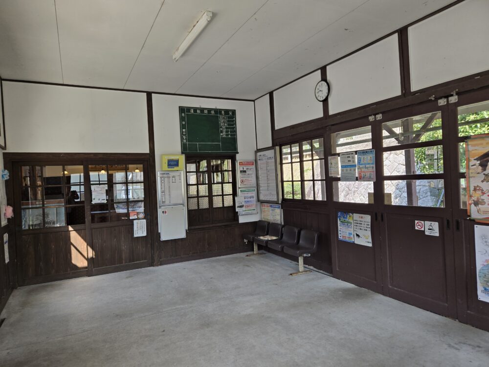 ホームから階段を降りていくと、雰囲気のある木造駅舎が出迎えてくれる