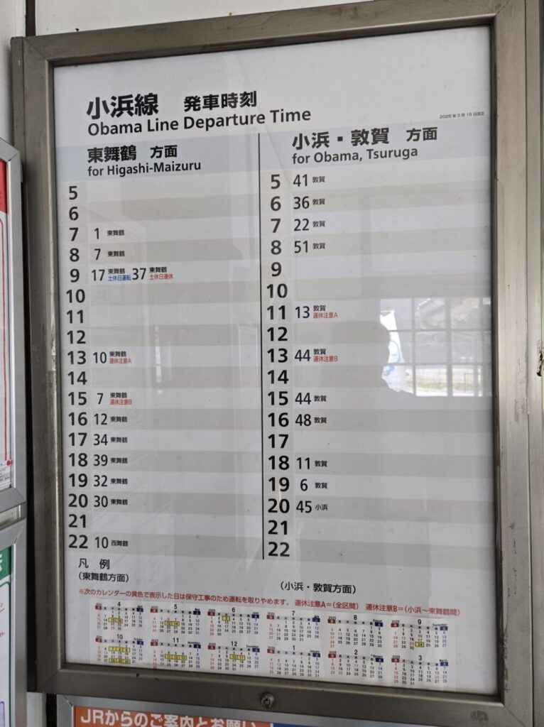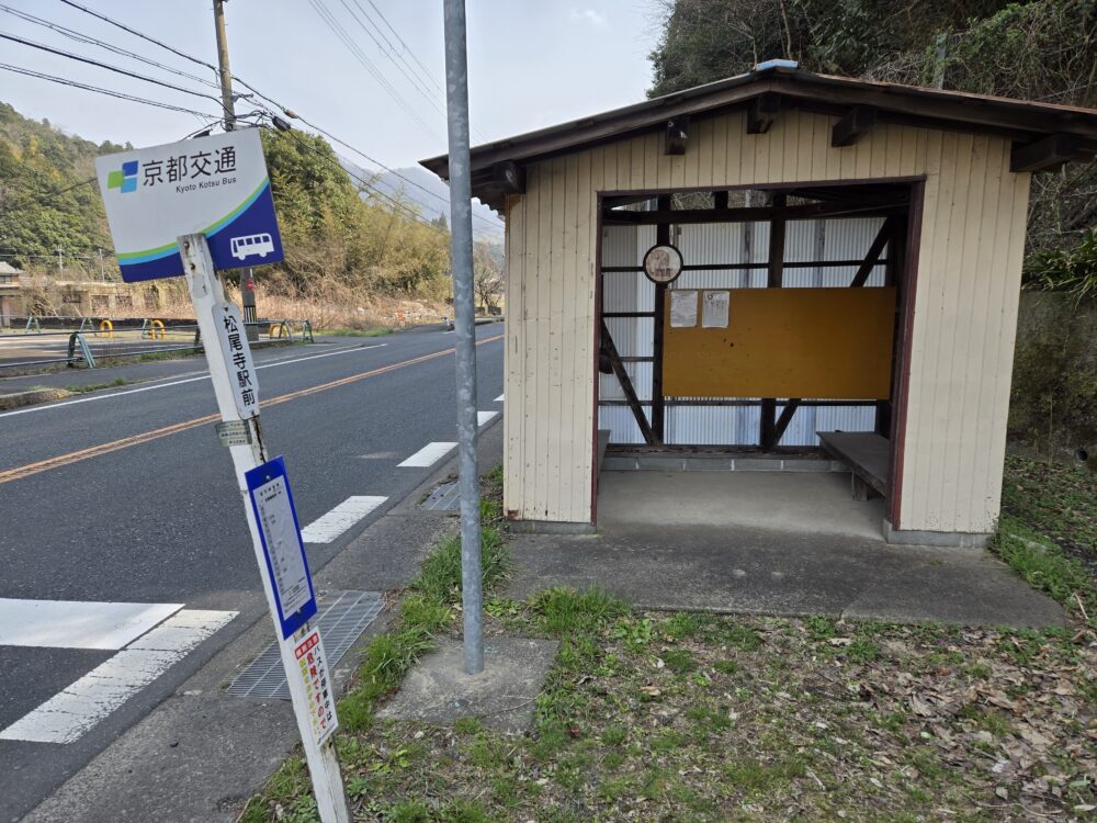 バス停があった。小浜線の若狭高浜駅から東舞鶴駅を結ぶ府県境をまたぐバスが運行されていて、松尾寺駅近くを通る