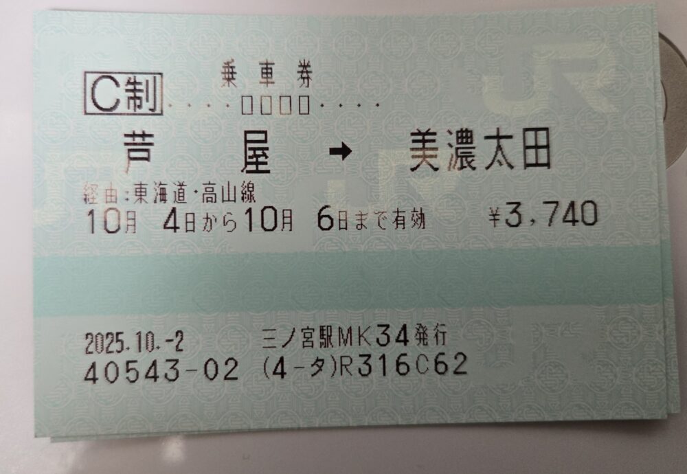 手にしたのは芦屋~美濃太田の乗車券。2日前に三ノ宮駅で購入した。ともにそれなりの知名度はある駅だが、この乗車券が1年にどれほど売れるのかは、やや疑問で、ある意味貴重かもしれない