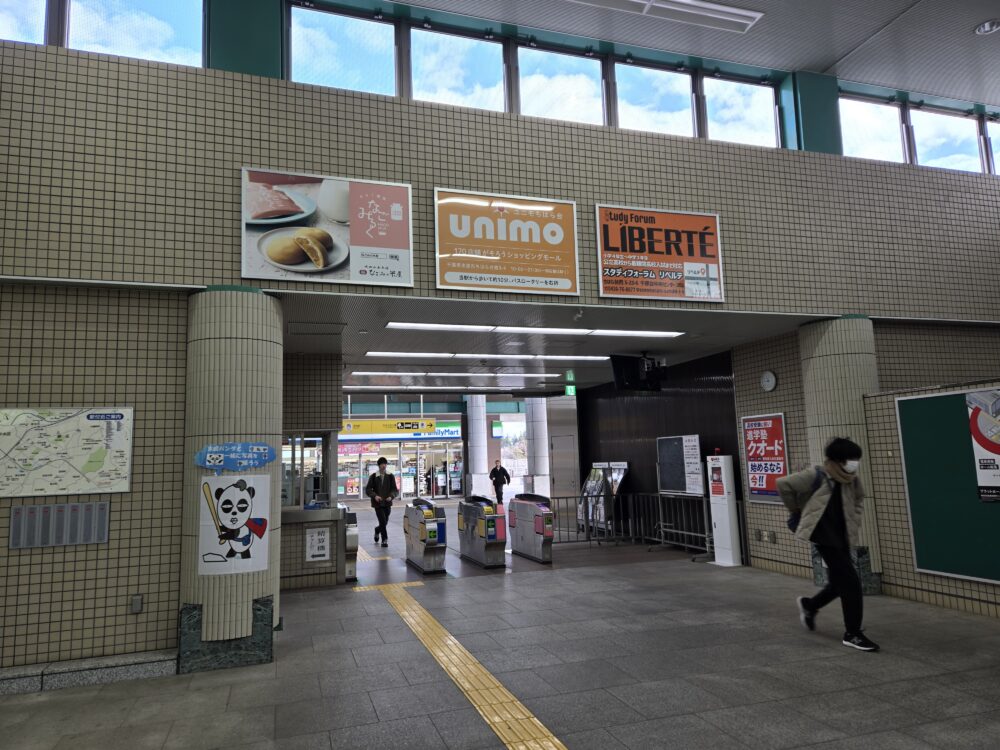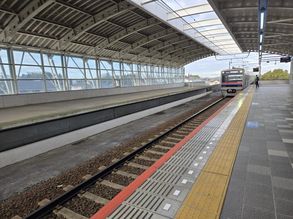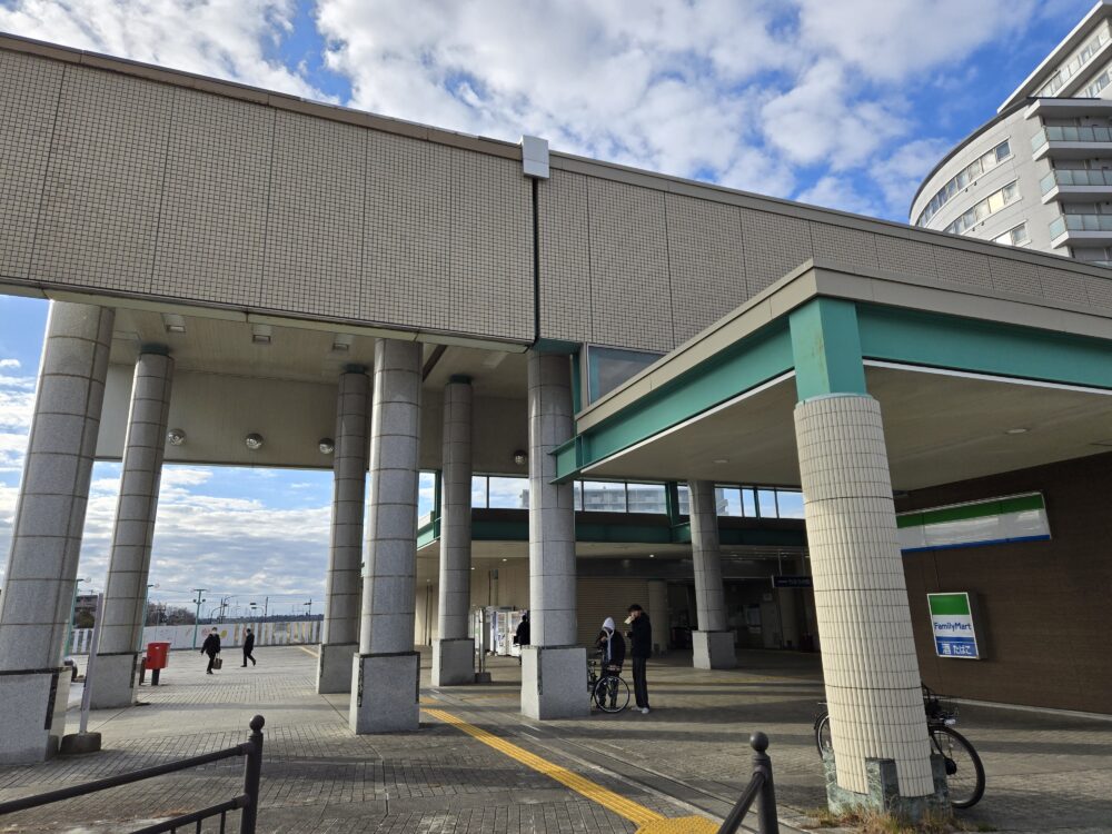 そして駅舎は各駅で繰り返してきたが、こちらも立派なものだ。奥にマンションが見える。先述した通り、緩急接続も予定していた駅なので力は入っている。コンビニがあるにもかかわらず居並ぶ自販機だけ見ても、1日5000人の利用の駅の規模ではない数だ