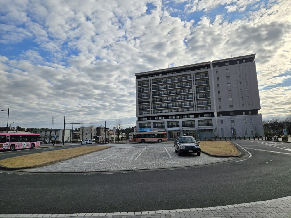駅前のロータリーも広々としている。計画的に駅と周辺の開発が行われたことが理解できる。マンションがあり、その向こうには戸建ての住宅も見える