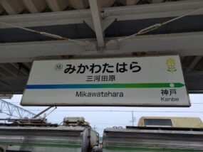 神戸駅に到着。こちらの駅名標も杉山駅と同じく厚みのあるものだ。そして見れば分かるが「かんべ」と読む。これまで記してきた通り、渥美線には「向ヶ丘」「豊島」そして、この「神戸」とどこかで見たような駅が存在する。全国の「神戸」については「かんべ」が多数派で、群馬県では「ごうど」があり、いずれも人名にもなっている。おそらく「こうべ」が最も少数派で、地方の小さな駅だったら、難読駅の常連になっていたかもしれない