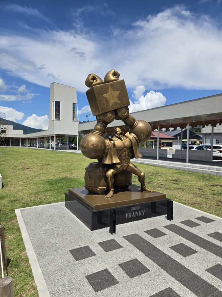 ワンピースのフランキー像。大変な人気者で撮影の人が絶えなかった。もうひとつの人気は
