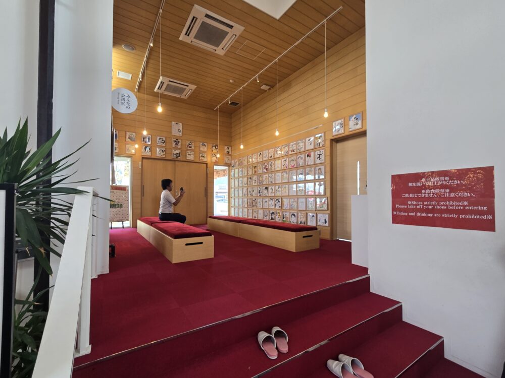 靴を脱いで入る交流施設は展示コーナーのようになっていて