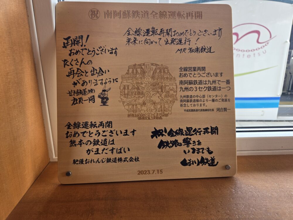 アニメの人気キャラも再開を祝っていた。2016年4月の熊本地震から2023年7月の全線復旧まで7年もの歳月を要した。地方の鉄道がこれだけの空白期間を経て復活するのは現在では、なかなか貴重なことである