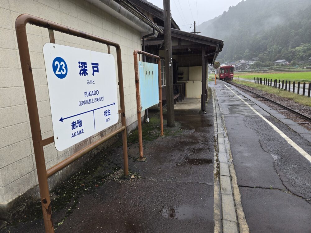 深戸駅にやって来た。時刻は14時すぎ。まだまだ早いように感じるかもしれないが、ダイヤの関係で1時間半もの待機をしなければならない。ということは美濃太田から岐阜経由で帰宅することを考慮すると、そろそろタイムリミットが迫っている