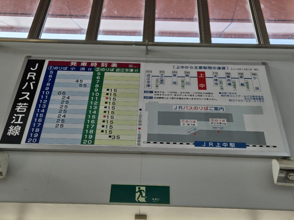 上中駅からJR西日本バスの若江線に乗車する。乗ったのは小浜行き