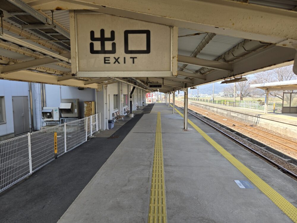 駅に隣接して道の駅があるからだ。時間を潰そうと思えば何とでもなる…と思い込んでいたが、実際は違った。あまりにも人の気配がなさすぎる、と思ったら、訪問日は木曜日で週に1度の定休日だったのだ。まだお腹は減っていないが、これはショック。ただ当駅では快適に過ごす方法は他にもある