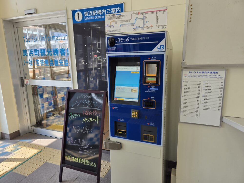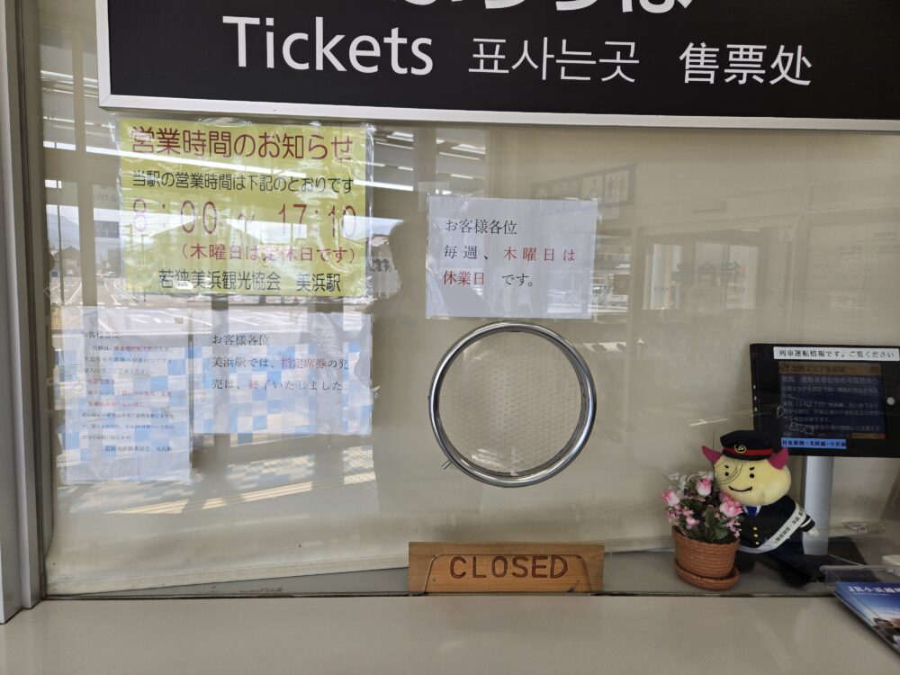 当駅も小浜線の他のいくつかの駅と同じく訪問直前の3月16日にみどりの窓口の営業を終了して簡易委託駅となった。観光協会に委託されているようで、道の駅と休日が連動していることを理解した