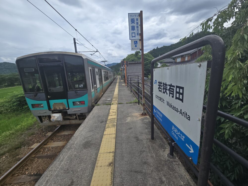 駅の周辺には、やや小さめの有田の集落がある。なお東西に走っているイメージのある小浜線だが、海沿いの小浜から、やや内陸寄りの上中に入ったこともあり、このあたりは再び海に向かうべく線路は南北に走っている