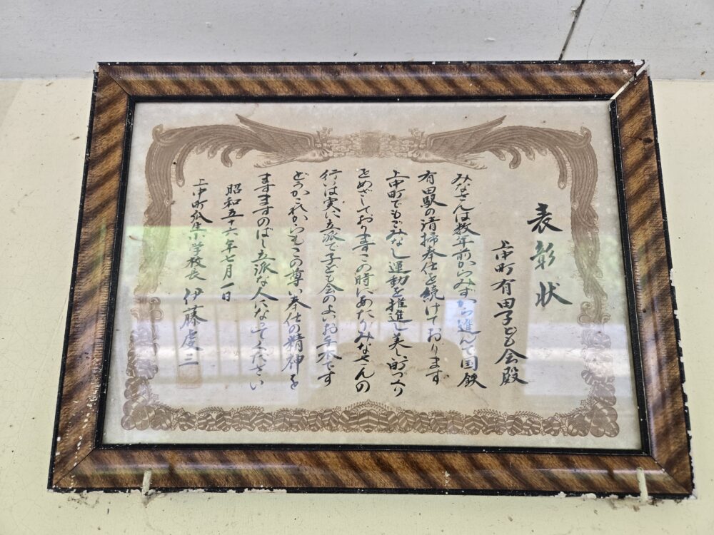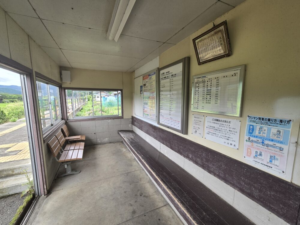こちらは待合所の様子。表彰状が掲げられているので見上げると