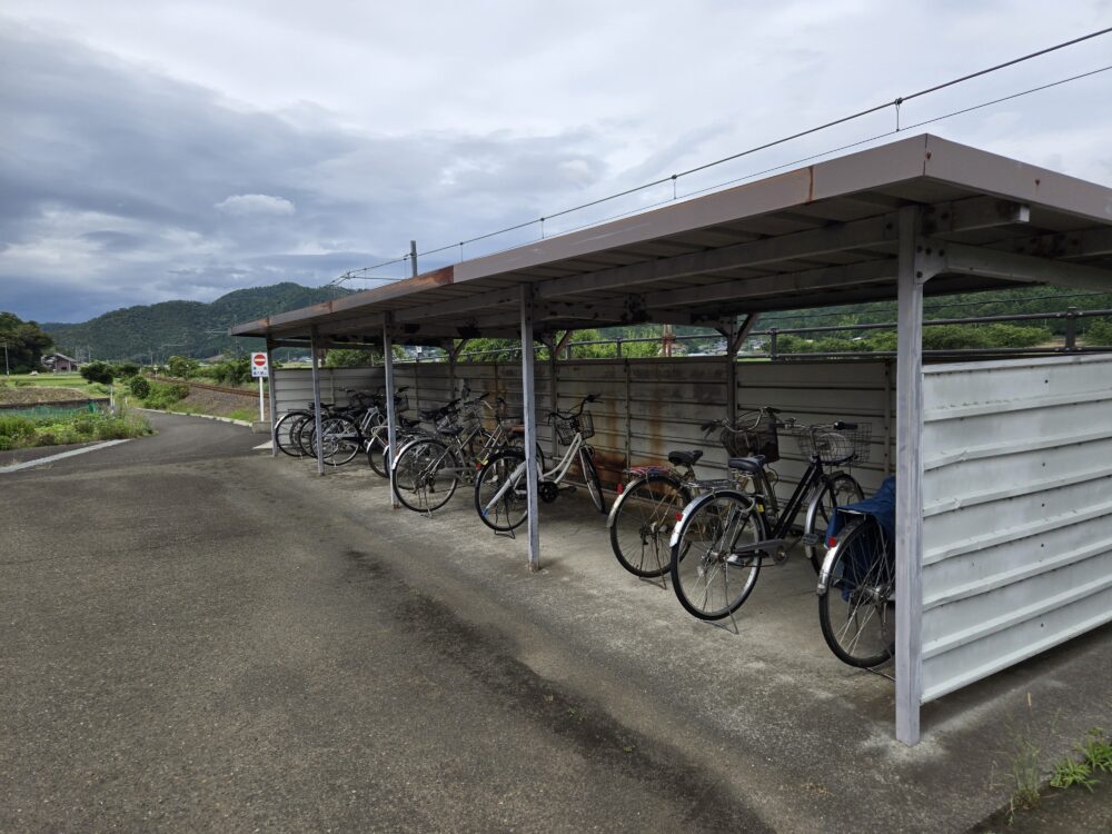 駅前の広場は大きく大型の車も入ることができるスペースがあり、駐輪場がある