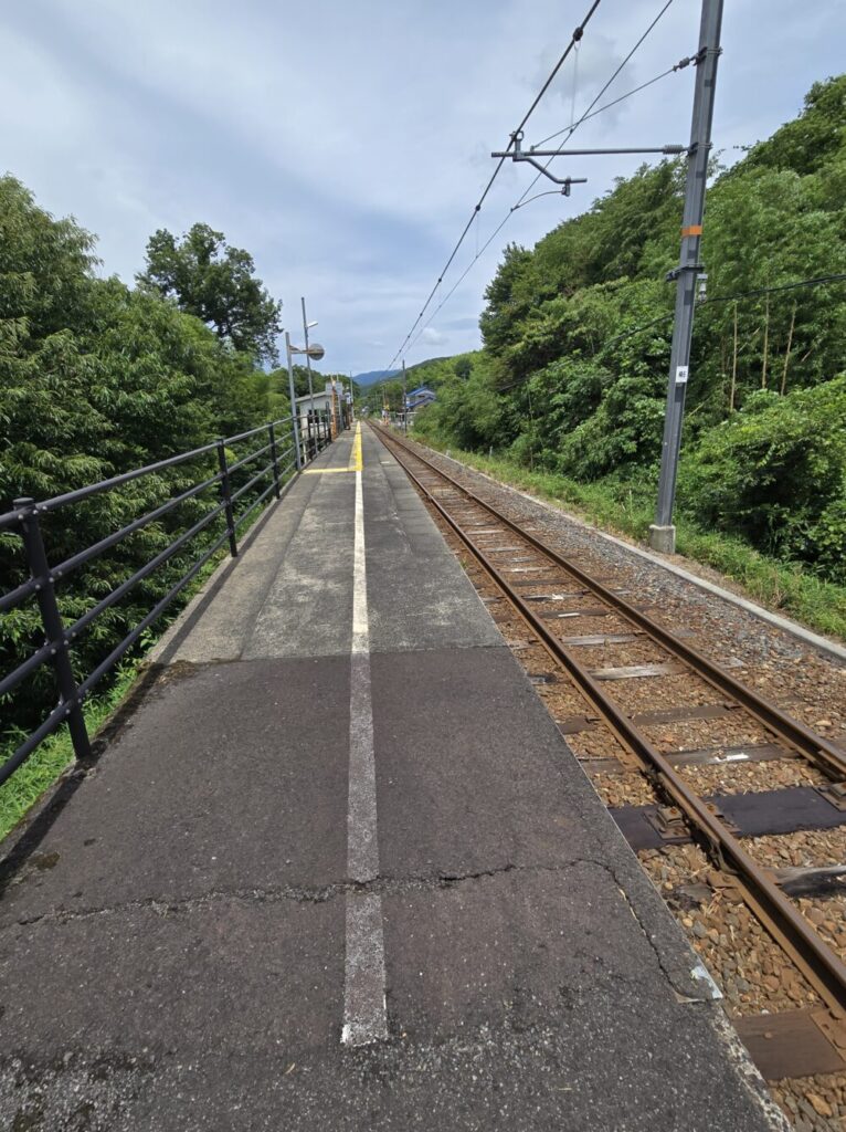 さて当駅の地図を見ると、もうひとつの顔に気づく。駅周辺の地図を見ると、駅の裏手となる森の部分に北陸本線の鳩原ループ線が通っていることが分かる。詳しい説明は省くが、急勾配を避けるために設置された上り線専用のループ線で、北陸本線に初めて乗ると「自分たちはどこに連れて行かれるのか」と思い、仕組みを理解すると車窓が楽しめる区間でもある