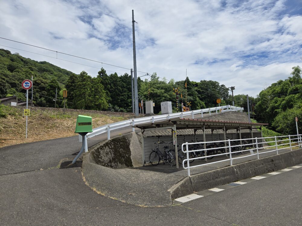 ホームに入るためには坂を登ってたどり着かなければならない。高台にホームがある関係で、そこにスペースはなく駐輪場は低い位置に設けられている