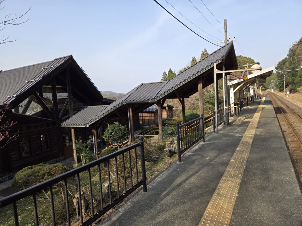 駅舎はまさにロッジ。もともとは開業時以来の木造駅舎だったが、電化後の2004年(平成16)に現在の姿に生まれ変わった
