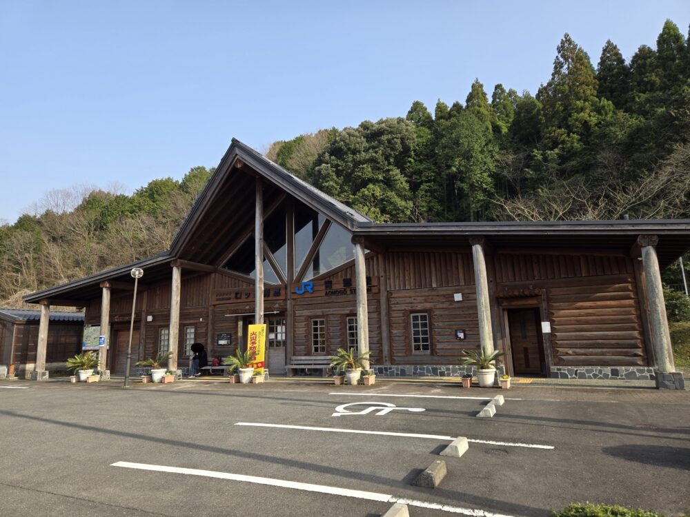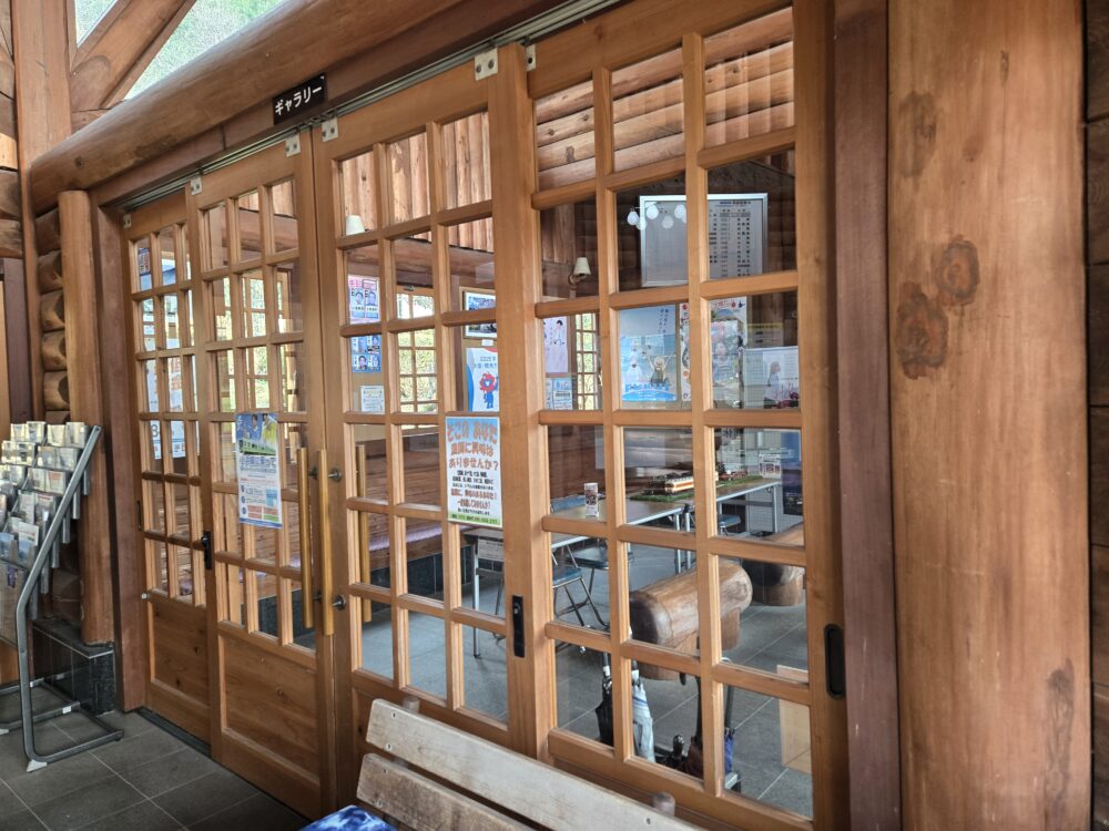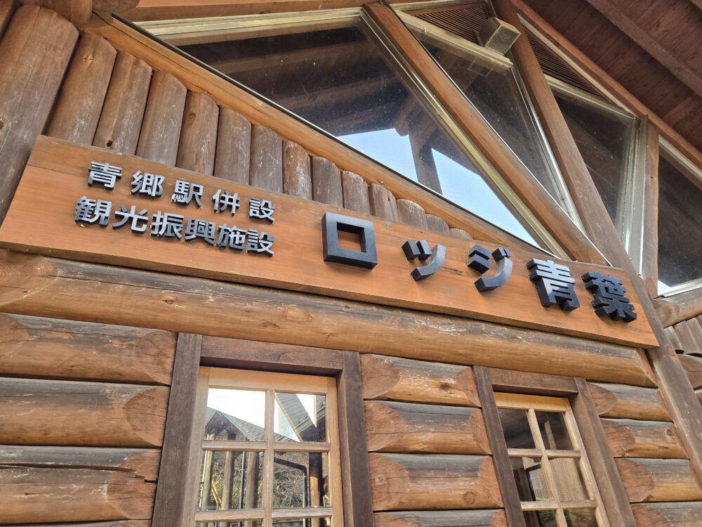 階段を降りて駅舎へと入る。丸太で造られた建物が下車した利用者を出迎えてくれる