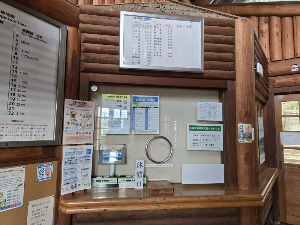 立派な待合室があるが、窓口が閉まっていると中には入れないようで施錠されていた
