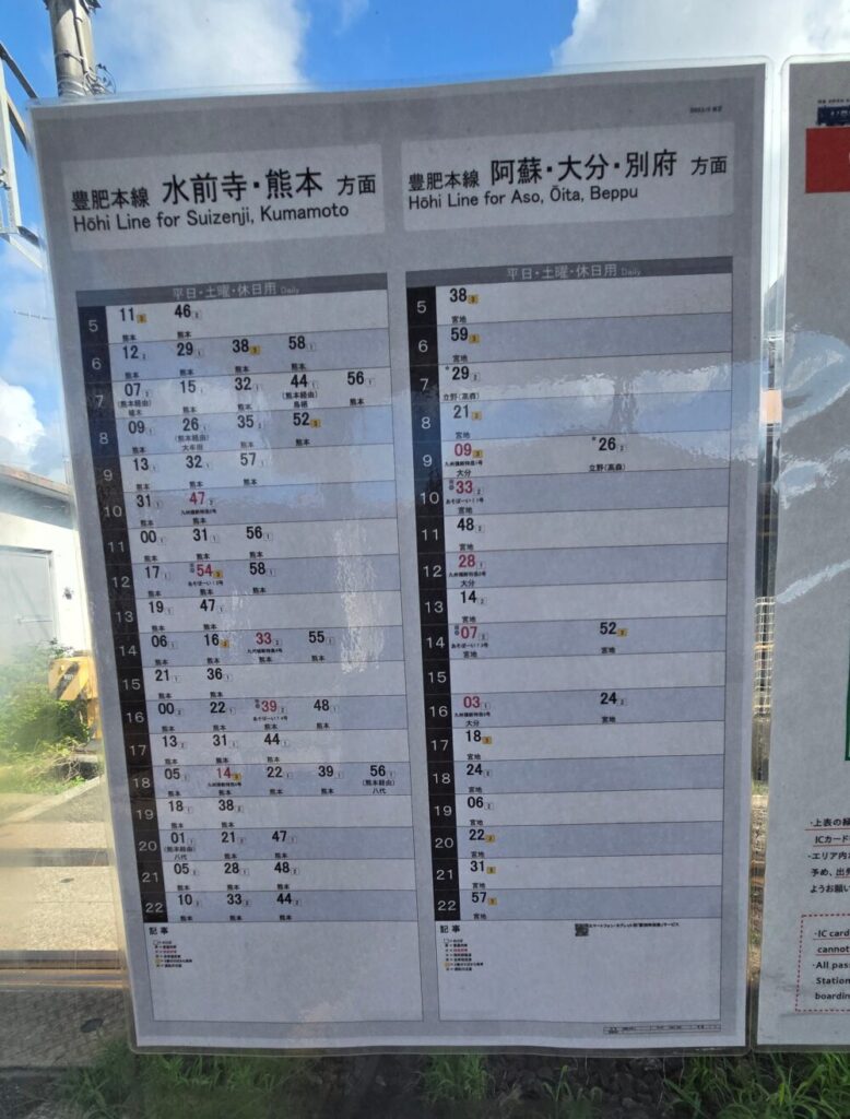 そして肥後大津の時刻表がこちら