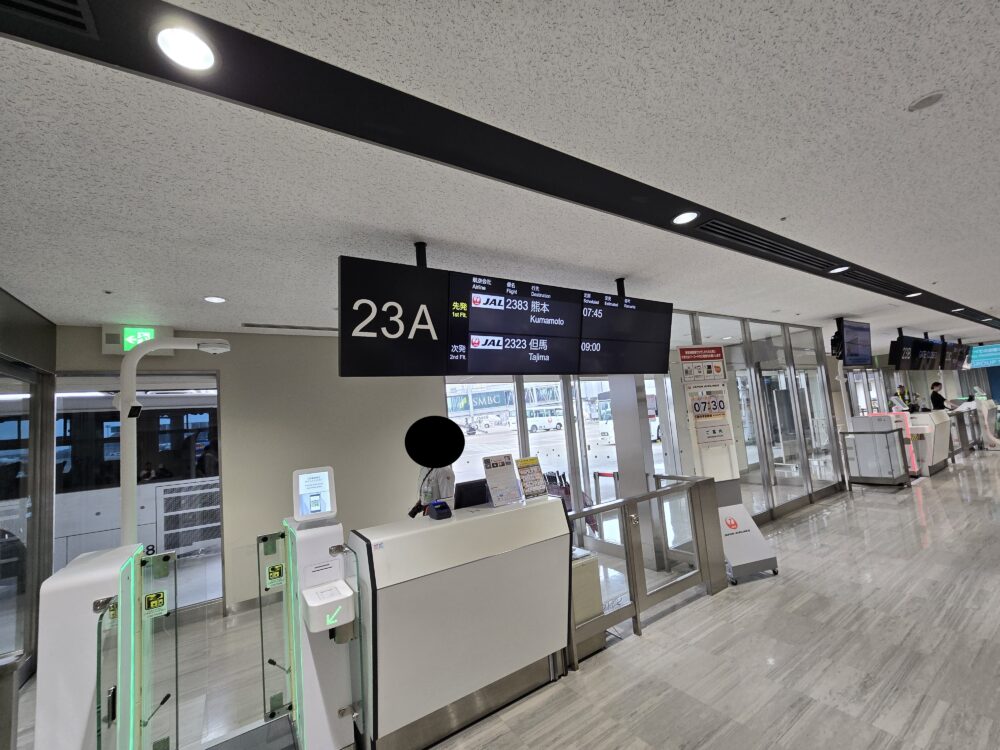 時刻表では空港着が8時55分。9時発の空港ライナーに乗車できれば、肥後大津発9時26分の南阿蘇鉄道直通列車に乗車できるのだが、電車の乗継ぎ時間5分とはわけが違う。降機してから到着ロビーを抜けてバス乗り場まで行くには時間がかかるとそもそも飛行機には遅延がつきものなので完全にあきらめ、次の列車は11時48分なので待ち時間はどう過ごすかなどと考えていたら、なんと5分の早着。しかも飛行機は最前列の座席をたまたま確保できていたため、先頭で降りて9時のライナーに乗車できたのだ