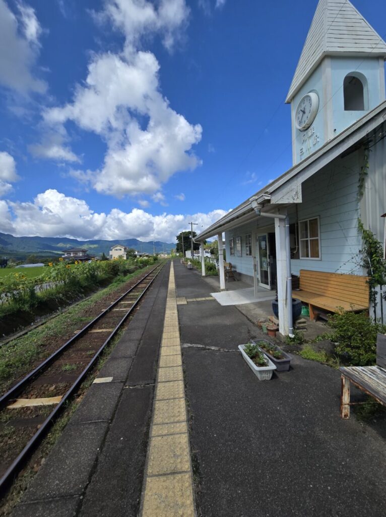 駅舎も開業時からの木造駅舎が残っていたが、南阿蘇鉄道に移管されて現在の姿に。木造駅舎を廃して新たにおしゃれなとんがり屋根の時計台付き木造駅舎を建てるあたり、新出発に向けた気概を感じる