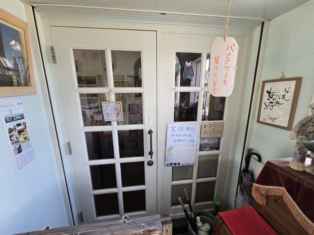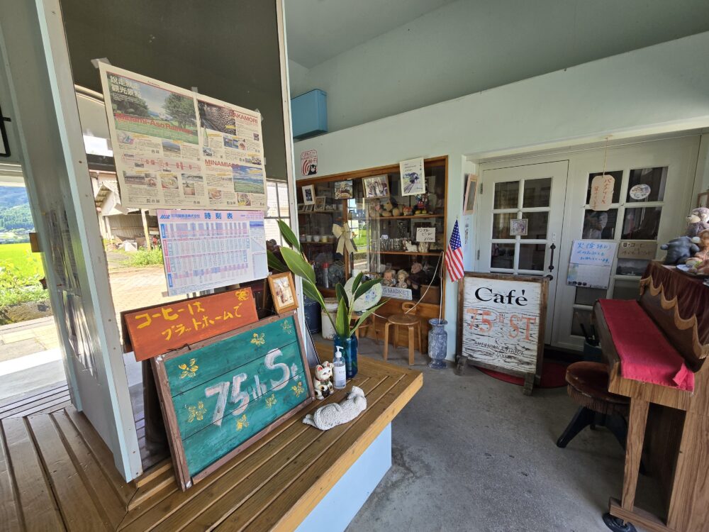 さて朝の時間帯を過ぎると南阿蘇鉄道はローカル線あるあるで、運行本数がガクンと減少する時間帯に入る。先述した通り、私が降り立ったのは10時38分だが、次の高森行きは12時34分(これが元々乗乗車予定の列車)、立野行きは13時00分と2時間もの空白がある。奇跡的な乗継ぎでここまで来たが、元々はたっぷり時間のある肥後大津駅で11時になったら飲食店も開くので、そこで昼食を済ます予定だったが、それはできなかった。肥後大津駅付近にはコンビニもあるが、もちろん買い物の時間はなかった。朝7時台の飛行機に乗るべく、摂った朝食は5時過ぎの牛丼店朝食なので、さすがに何かお腹に入れたいところだが、これについてはさすがに列車内で調べた。当駅にはカフェが入居しているのだ。駅舎を利用した飲食店は他駅にもあるようだが、営業時間が不明。ただこちらは平日もオープンしているようなので「朝からやっているのかな」などと思いながら、あらためて駅舎に入ると
